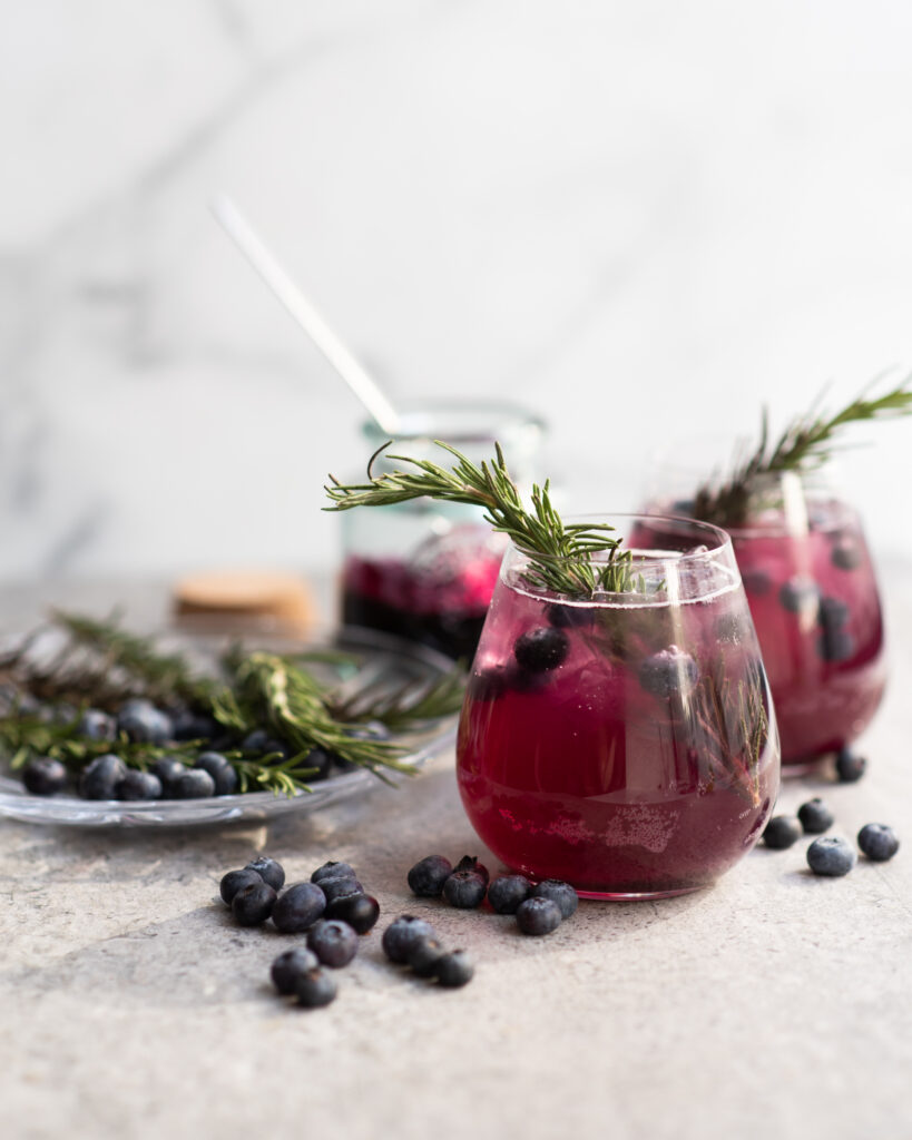As the weather starts to warm up, our craving for good cocktails intensifies. We’re moving past some of the heavier and stronger flavours from the winter and reaching for bright, fresh flavours. This Blueberry Thyme Gin Fizz is a gorgeous cocktail whose effervescence and freshness is perfect for enjoying under the sun. Also, the beautiful colours of this cocktail is a great way for you to show off your drinkware collection!