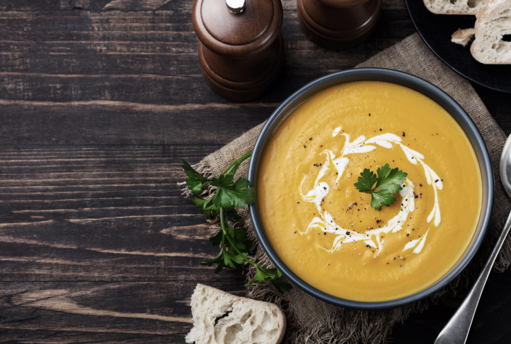 While butternut squash may seem like a more autumnal flavour, its warmth and subtle sweetness is exactly what you need to put a smile on your face when it’s dreary outside. Enjoy making this comforting and aromatic soup anytime you feel you need something to brighten your day.