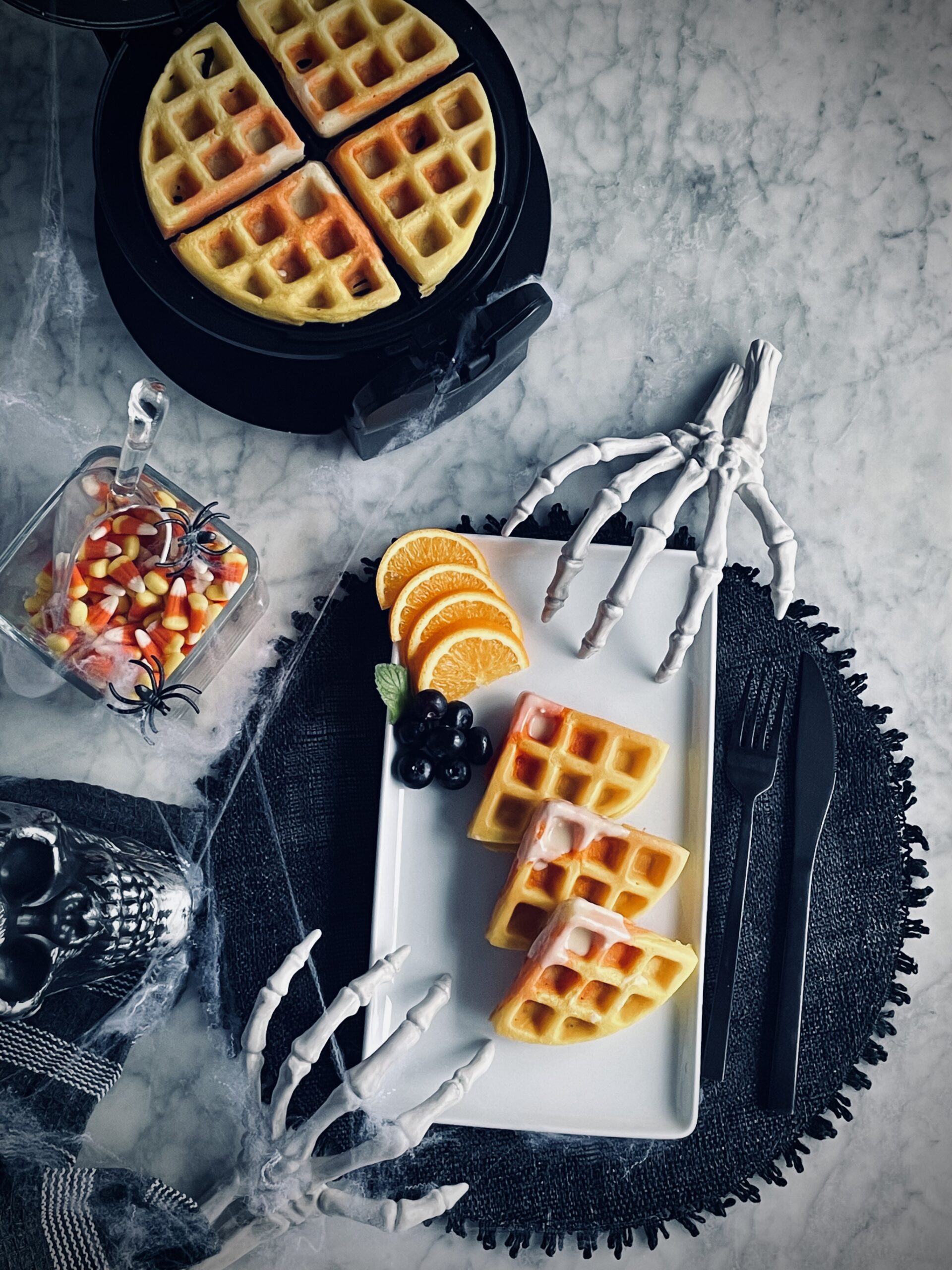 Did you buy too much candy corn this Halloween? We have a super fun idea to use this classic Halloween candy for a brunch idea! We’re making candy corn waffles!