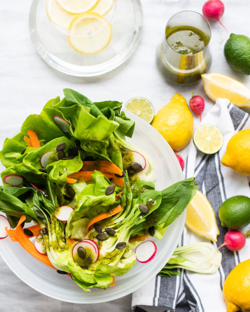 A light, preferably lemony salad dressing of your choice