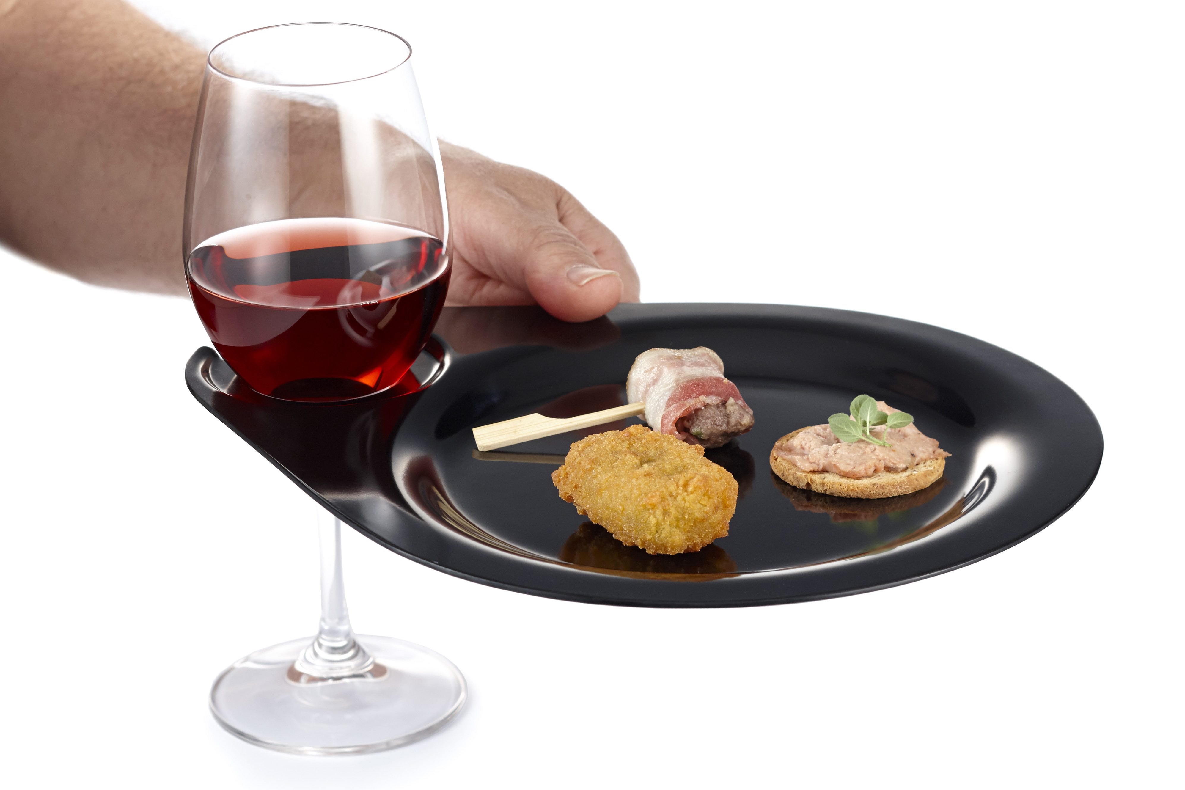 To carry around all the delicious foods that will be served, your guests can use our Party Plate. It has a built in stemware holder which allows you to hold your plate and piece of drinkware all in one hand, freeing up your other hand.