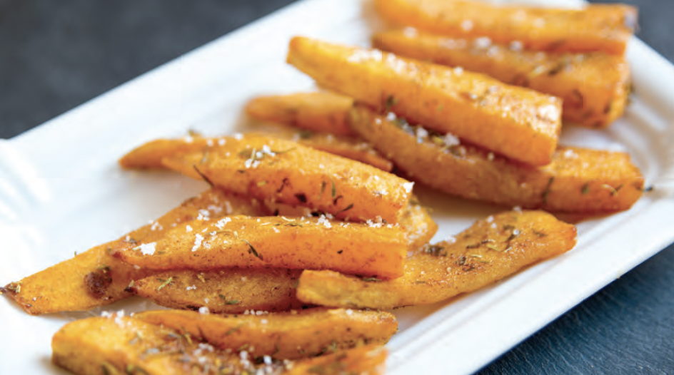 1. Cut the sweet potatoes into even pieces, about 4 inches long and ¼-inch thick.