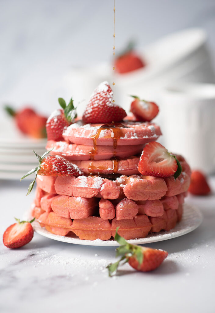 Pretty in pink! These waffles are sure to add a smile to your face.
