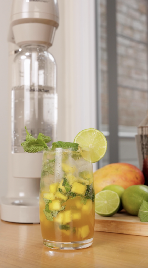 With the help of the Retro Sparkling Beverage Maker, you can take your cocktail game to the next level. Create homemade sparkling water and sodas effortlessly, and elevate your favorite cocktails like our Mango Mojito. This delightful combination of crushed muddled mango, fresh mint, tangy lime juice, and homemade sparkling water will surely quench your thirst and transport you to a sunny tropical getaway. Cheers to a refreshing and memorable experience!