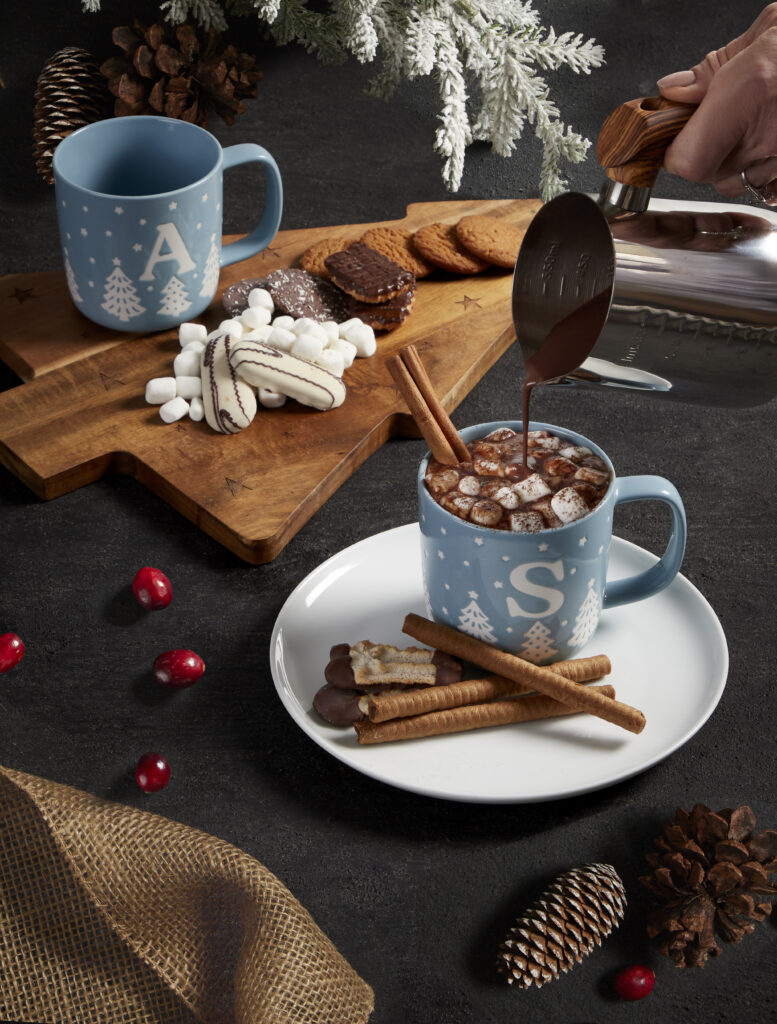 - Serve the hot chocolate in the Monogram Mug Snowflake for a cozy and festive touch.