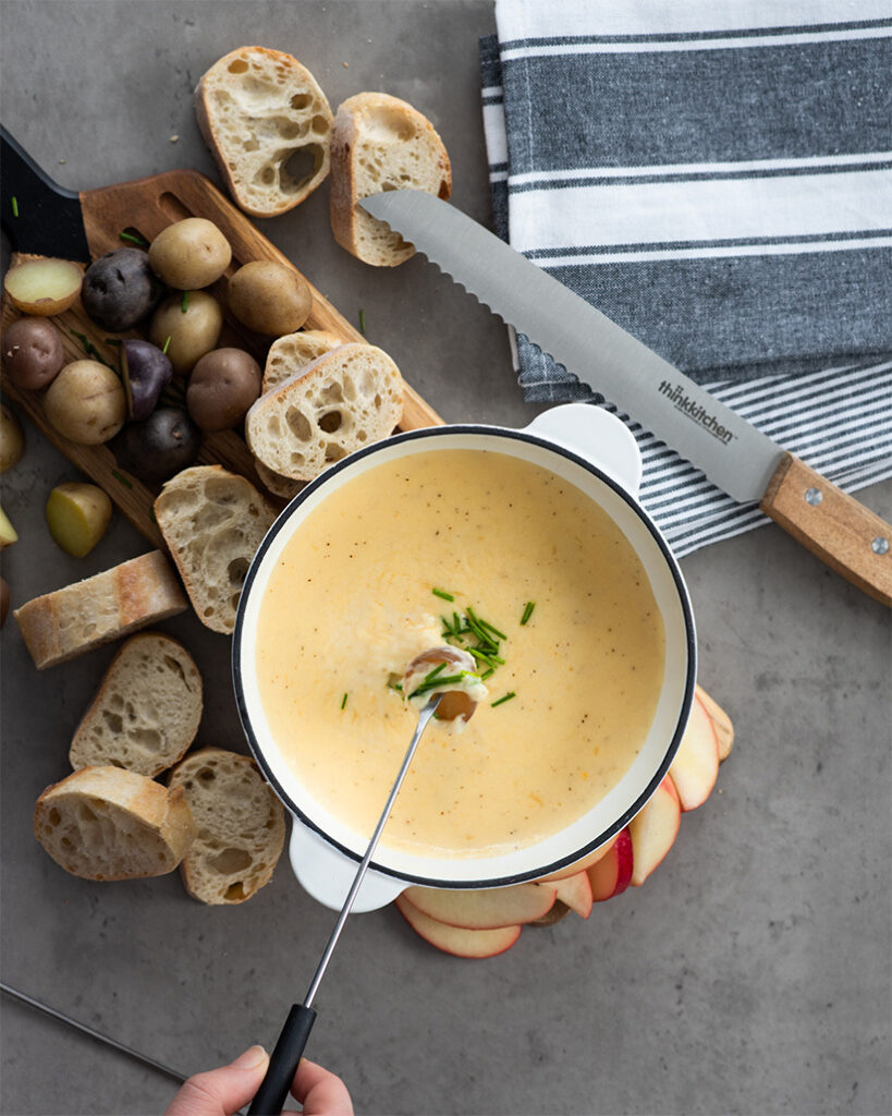 It’s finally the perfect season for a cheese fondue night! The air is crisp, and we’re craving warm, comforting flavours. We wanted to add something special to the classic fondue recipe, so today we’re making a squash and cheddar cheese fondue. These deep, autumnal flavours are absolutely irresistible – and so easy to prepare!