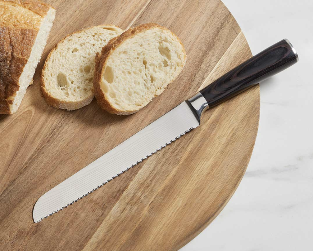 A serrated knife is an essential kitchen tool, known for its distinctive saw-like blade. Unlike straight-edge kitchen knives, its sharp, jagged teeth effortlessly slice through tough, textured surfaces without crushing the softer interiors. This makes serrated knives ideal for cutting crusty bread, tomatoes, citrus fruits, and even delicate cakes.