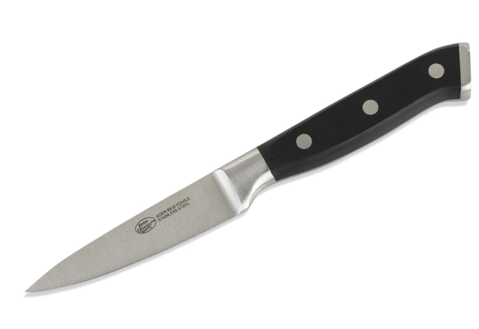 A paring knife is a small, versatile tool that is essential for precision tasks in the kitchen. Its short, sharp blade—typically around 3 to 4 inches long—makes it ideal for peeling, trimming, and slicing fruits and vegetables with ease. The paring knife is perfect for tasks that require control, such as deveining shrimp, removing seeds, or cutting intricate garnishes.